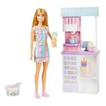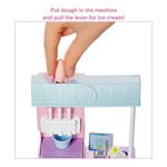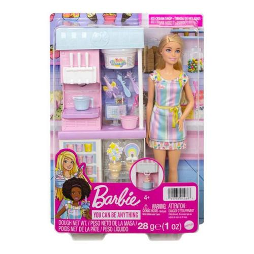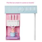Explore the experience of running an ice cream shop with the Barbie® Ice Cream Shop Playset! Kids love all things ice cream, and with this playset they can run an ice cream shop and make yummy ice cream cones, too. Playset includes Barbie® ice cream shop doll (12 inches) wearing a cute ice cream print dress and striped apron, ice cream station and accessories. Kids can use two kinds of dough (pink or blue) and put it in the ice cream machine, pull the lever and watch the 'ice cream' swirl out for realistic ice cream making fun! They can use bowls or cones and decorate the ice cream with toppers to complete the treat! Then it's time to ring up the purchase at the register. Playset includes Barbie® doll, ice cream station, 2 colors of dough, 2 bowls, 2 cones, 3 decorative toppers, 2 spoons, cone holder and register. Doll cannot stand alone. Colors and decorations may vary. Makes a great gift for ages 3 years old and up.