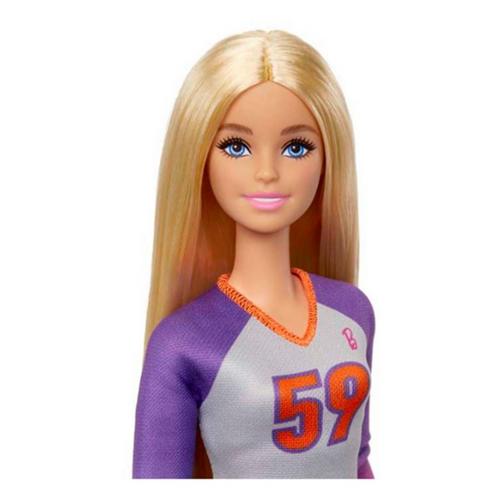 Barbie® Made to Move™ Volleyball Player doll is ready to jump into the game! She has 22 'joints' so kids can help her serve, pass, and spike the ball -- also included. Always ready to play, she comes dressed in her uniform complete with a top, shorts, and kneepads. Go number 59! Kids can dream big and imagine everything they can become with Barbie® Career dolls! Doll cannot stand alone. Colors and decorations may vary.