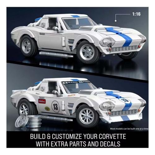 Less than 130 models were ever produced... but now it’s yours to build. Enter the fully buildable 1:16 scale Corvette Grand Sport by Mattel Brick Shop. This detailed and authentic set includes extra parts for customization, metal wheel covers, a decal sheet, a signature plate, plus an exclusive metal car to collect and display. Collect all the cars in the Elite Series and build your garage.