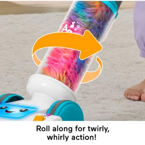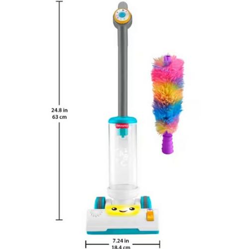 The Laugh & Learn 2-in-1 Vacuum electronic toy from Fisher-Price offers 2-in-1 learning fun for toddlers with classic push-along pretend play and a removable fuzzy duster! Sized just right for toddlers to roll and explore, this toy vacuum features cool twirling action, multicolor lights, and 2 play modes with 45+ songs, sounds, and phrases. Kids can pretend to tidy up while discovering the alphabet, counting, colors, and more! Requires 2 AA batteries (included). Colors and decorations may vary.