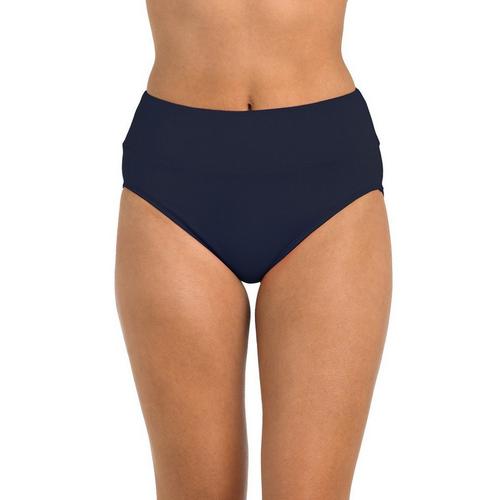 Women's 24th & Ocean Solid High Waisted Spliced Swim Bottoms