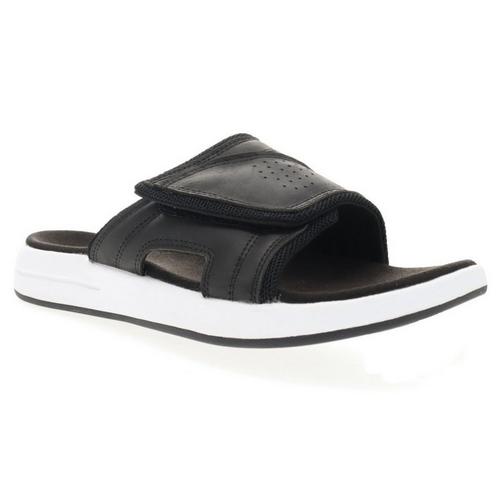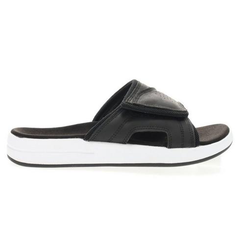 Nubuck slide sandal with wide, padded adjustable hook and loop strap for a great fit. Lightweight, ultra cushioned EVA footbed for all-day comfort and support. High-performance rubber outsole provides traction and durability for long-lasting support.