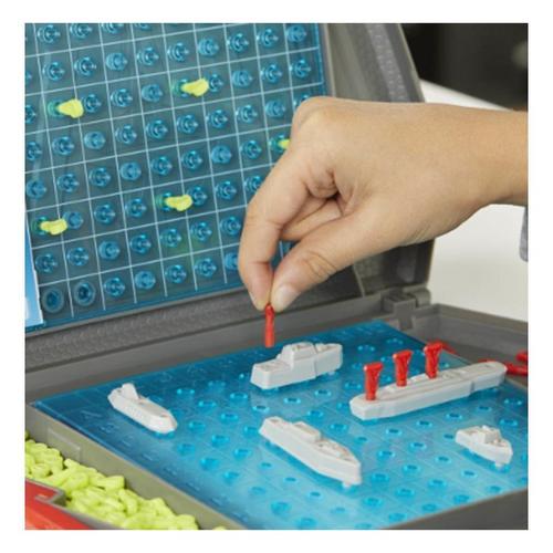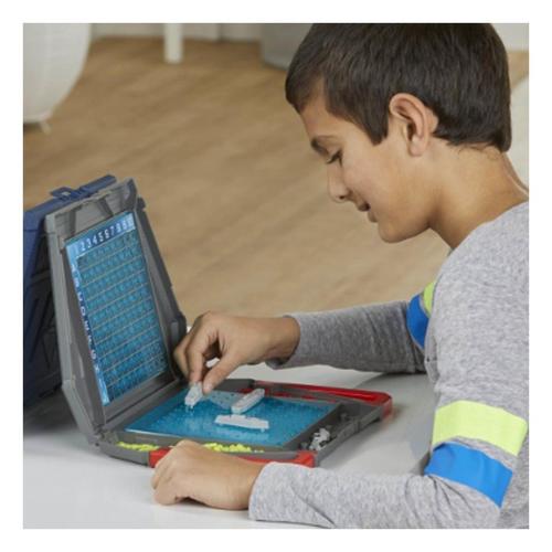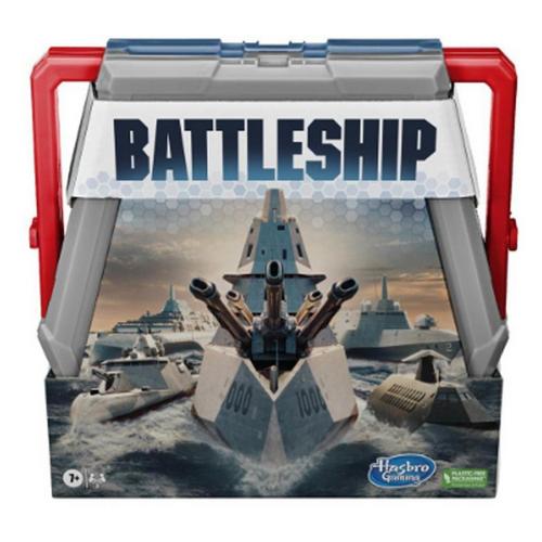 This Battleship board game is the classic game of naval combat that brings together competition, strategy, and excitement! In head-to-head battle, 2 players search for the enemy's fleet of ships and destroys them one by one. With convenient portable battle cases and realistic looking naval crafts, the Battleship game puts players right in the middle of the action. Players command a powerful fleet that includes an aircraft carrier, a destroyer, a submarine, a patrol boat, and a battleship. Each player announces the coordinates of each strike and sees if it hits. Position ships strategically to survive an opponent's relentless strikes, and track hits and misses with red and white pegs on the ocean grid. No ship is safe in this game of stealth and suspense. It's a fun indoor activity for kids ages 7 and up, and it's easy to pack up and take on the go. Hasbro Gaming and all related trademarks and logos are trademarks of Hasbro, Inc.