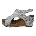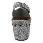 {"reviews":[],"offset":0,"limit":10,"total":0,"gtin":"195197759968"}"Full Description:\nStylish Wedge with beautiful floral emboss detail in Vegan Leather and Cork wrapped accent.\n\nFeatures:\n\u003cul>\n\u003cli>2 1/2" heel\u003c/li>\n\u003cli>1" platform, cushioned footbed, velcro strapped heel\u003c/li>\n\u003cli>Stylish wedge sandal for a fashionable look\u003c/li>\n\u003cli>Beautiful floral emboss detail adds a touch of elegance\u003c/li>\n\u003cli>Crafted with durable and cruelty-free vegan leather\u003c/li>\n\u003cli>Cork-wrapped accent provides a unique and stylish detail\u003c/li>\n\u003cli>Wedge heel offers comfortable height and support\u003c/li>\n\u003cli>Ideal for casual wear and adding flair to any outfit\u003c/li>\n\u003cli>Light Grey color for versatile styling options\u003c/li>\n\u003c/ul>\n\n"