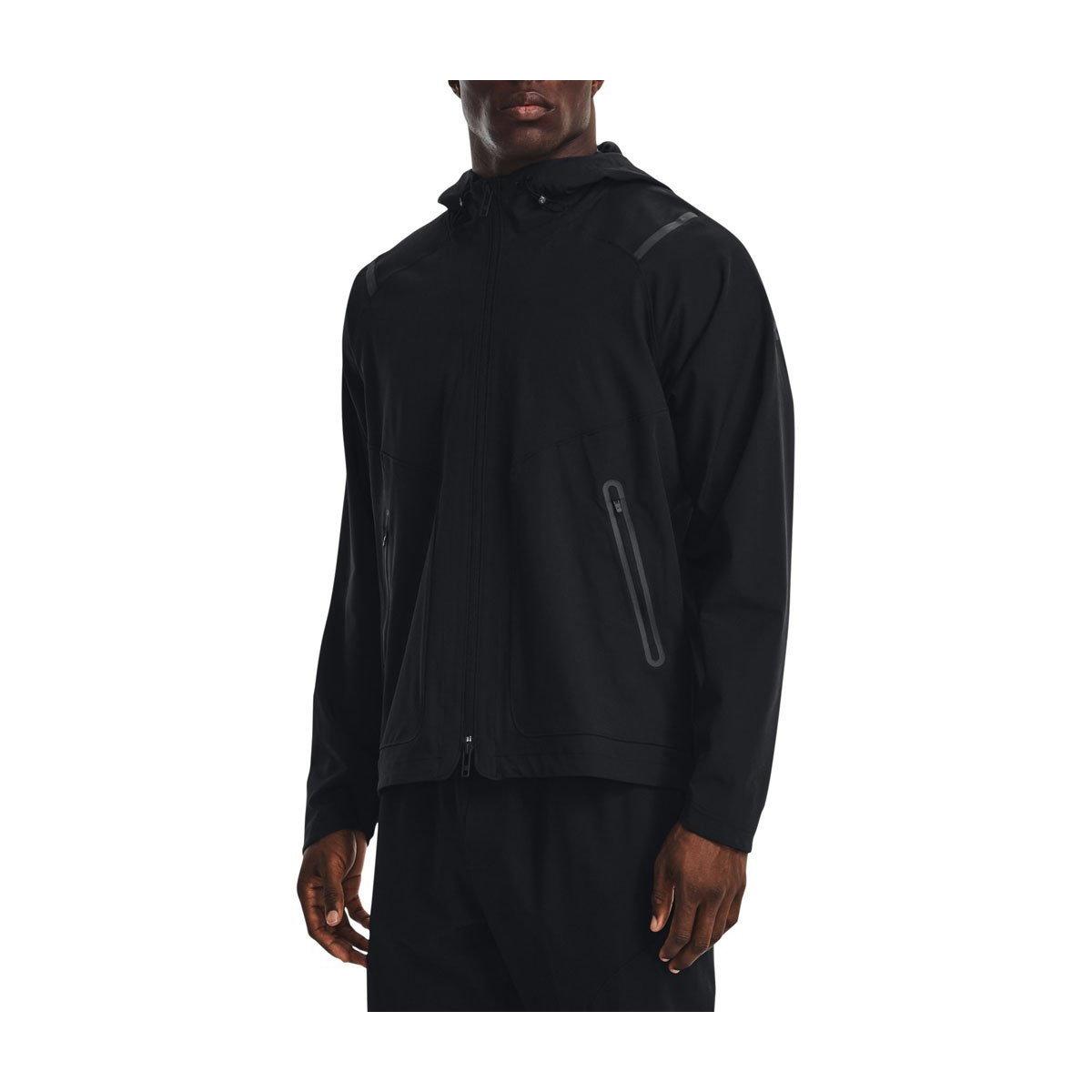 If you're looking for a jacket you can actually train in on cold,wet days—you found it.Super-light and stretchy,rain rolls right off,and it keeps you warm but not hot.UA Storm technology repels water without sacrificing breathability.Stretch-woven fabric is lightweight, durable & moves with you.4-way stretch material moves better in every direction.Bungee adjusts at hood opening & bottom hem for easy adjustability & a secure fit .Secure,zip hand pocket.