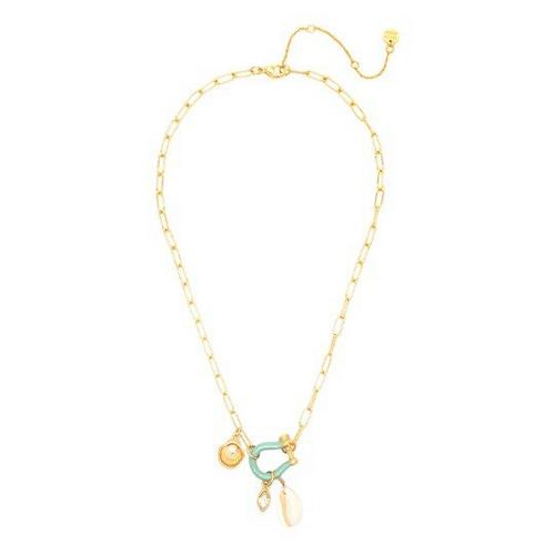The ultimate vacation-ready accessory- the Low Tide Shell Charm Necklace. This gold-plated paperclip chain is the perfect addition to any mixed-metal stack, while vibrant pastel enamel and gold-plated cowrie charm will instantly take you straight to the sunny shores of Miami Beach.