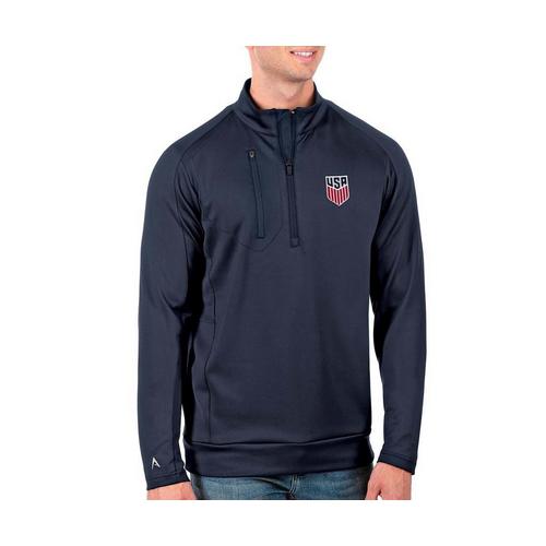 For an extra layer when the temperatures drop, wear the Antigua USMNT Generation 1/4 Zip. With USA colors and graphics, you’ll be able to show off your team pride throughout the entire season and year. Made with soft fabric, you’ll stay comfortable throughout the whole game in the Antigua USMNT Generation 1/4 Zip.