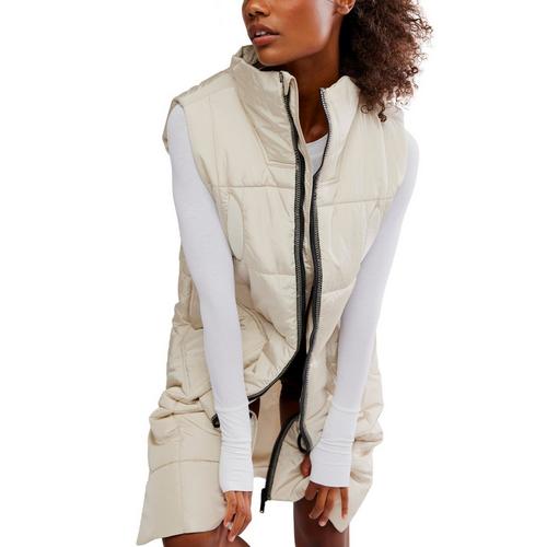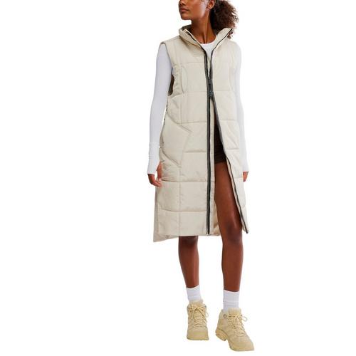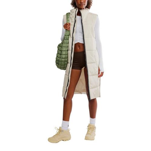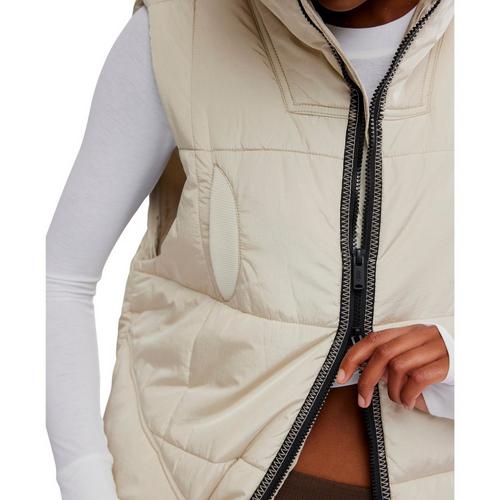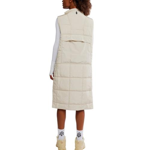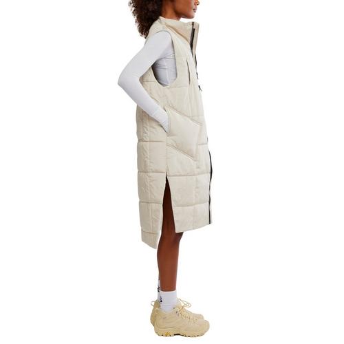Pack it up and take it everywhere. This functional vest is featured in a quilted fabrication and knee-length silhouette with low-cut armholes and exaggerated side slits.