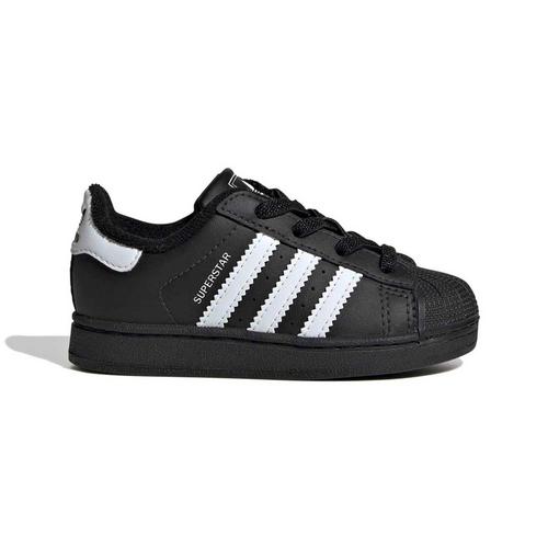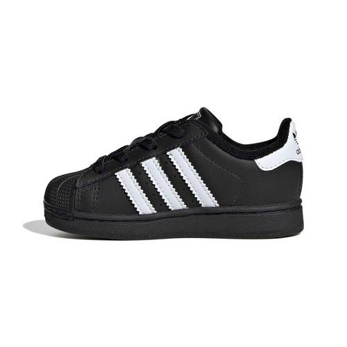 Introduce a legend to your little one’s wardrobe with the Toddler adidas Superstar II Elastic Lace Sneakers. Sized down specifically for the smallest style stars, this pair features a smooth leather upper and the unmistakable rubber shell toe that defined the original. Designed for toddlers on the go, these sneakers swap traditional ties for stretchy elastic laces, providing a secure fit that is incredibly easy to slip on and off. Finished with the classic serrated 3-Stripes and a durable rubber outsole, these shoes offer timeless heritage and everyday comfort for your child’s first steps.