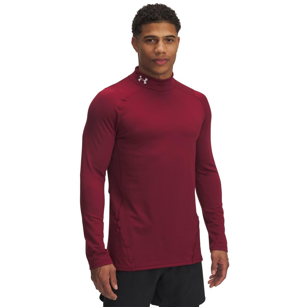 The Men's Under Armour ColdGear Armour Fitted Mockneck Base Layer Top is the ultimate undershirt. When it's cold outside, you need the Men's Under Armour ColdGear Armour Fitted Mockneck Base Layer Top. The Under Armour ColdGear Armour Fitted Mock is sweat-wicking and quick-drying. Plus, the dual-layer fabric traps in enough heat to keep you as warm as you need. For your next cold-weather workout, make sure you have the Men's Under Armour ColdGear Armour Fitted Mockneck Base Layer Top.