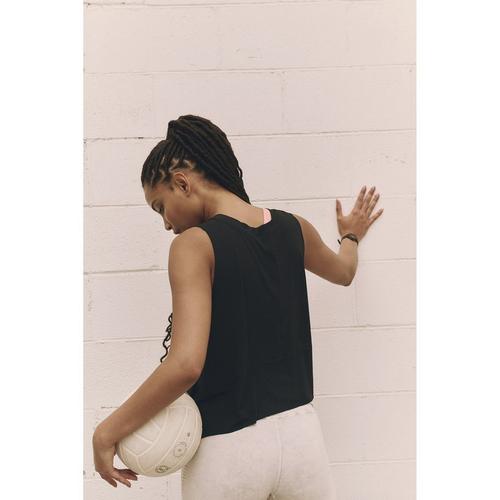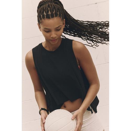 "Turn up the tempo in this featherlight tank, with a sweat-wicking finish and a relaxed silhouette that brings a breath of fresh air to your every move.