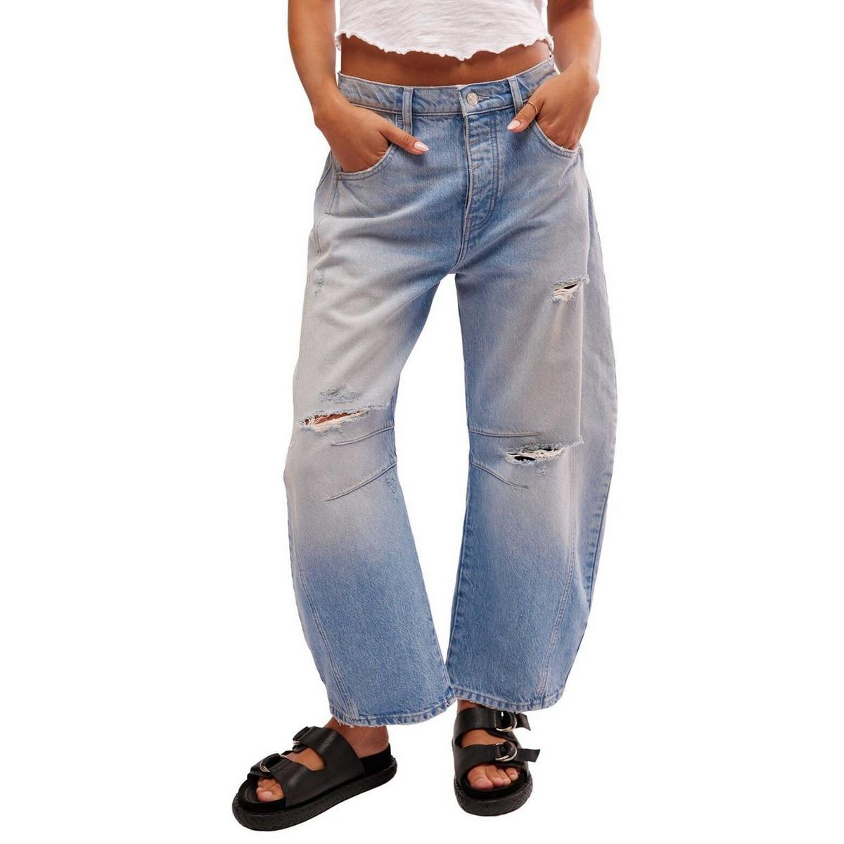 These We The Free Good Luck Mid-Rise Barrel Jeans offer a relaxed, comfortable fit with a modern silhouette. The soft fabric and unique barrel leg cut provide a stylish twist on classic denim. Perfect for any casual outing, these jeans combine effortless style with all-day comfort. Dress them up or down, they’re sure to be your new go-to wardrobe staple. The mid-rise barrel jeans gives a flattering, versatile look to pair with your favorite tops.