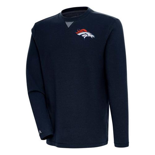 Antigua Denver Broncos Chest Crest Flier Bunker Crewneck