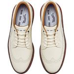 The Pioneer Magnolia maintains the performance architecture of the Pioneer Collection—close-to-ground stability, out-of-the-box comfort, and responsive traction—while integrating a classic wingtip design and a double-stitched storm welt that elevates both style and function. The Blucher construction allows for an adaptable fit. This thoughtful fusion delivers Tiger approved performance with luxury style that commands attention on the course.