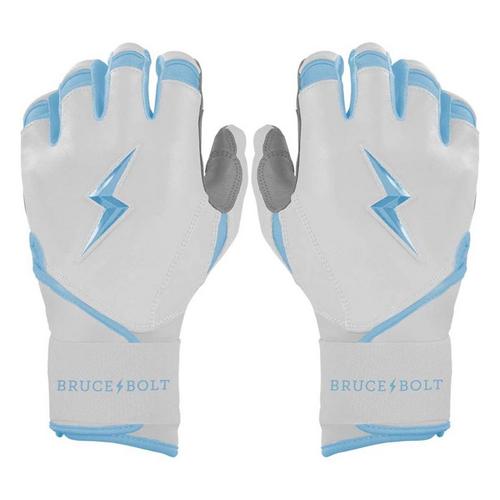 The Bruce Bolt Chrome Series batting gloves are made of the highest quality leather in the world, making them easily reliable for every game. The long cuff design provides additional support and protection, allowing players to swing with confidence. The Cabretta leather is incredibly soft while maintaining durability, and don't get hard or stiff throughout time. The ergonomic, reinforced design of these Chrome Series batting gloves will make every hitting experience off the charts.