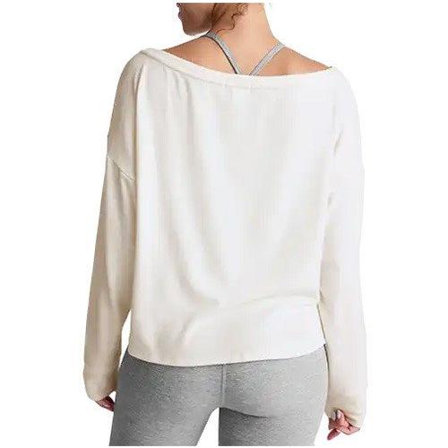 The Women's Beyond Yoga Let Loose Long Sleeve Shirt is the perfect layer to throw on after a workout or when settling in for a relaxed day. Crafted from Luxe Lounger fabric, this top offers a cashmere-like softness that is both stretchy and breathable, ensuring comfort without overheating. The wide off-the-shoulder neckline and loose, boxy fit deliver a flattering, effortless look that layers beautifully over your favorite sports bra or tank. Enjoy luxurious softness and versatile style with this essential piece, designed to become your new emotional support pullover.
