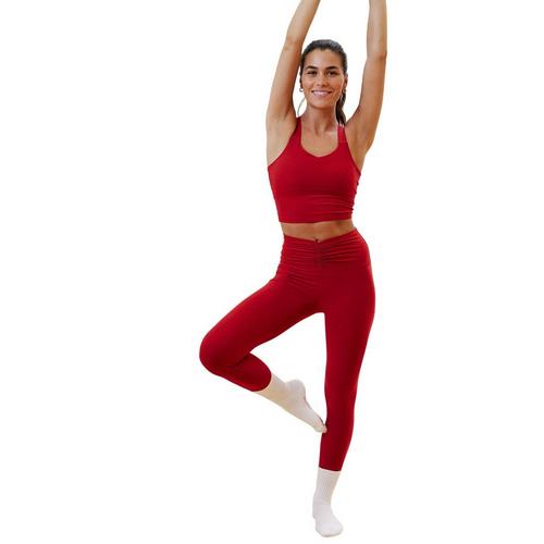 Stay centered, stay comfortable. This unique legging features a shirred front gathering at waistband that flatters all shapes like no other legging can.