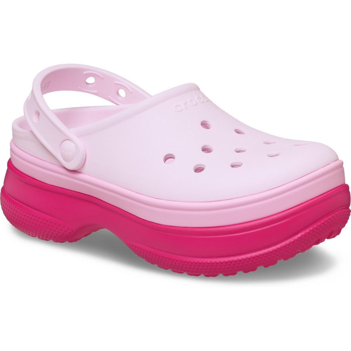 With a feminine fit and bold stacked outsole, our new Classic Stacked Clog embraces modern trends and minimalist designs. The stacked outsole delivers a cool colorblocked look and extra height. And the Jibbitz™ holes on the upper and backstrap make it easy to personalize your look. For fresh and expressive style combined with the Crocs comfort you love, step into the Classic Stacked Clog.