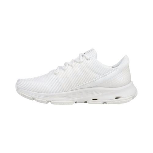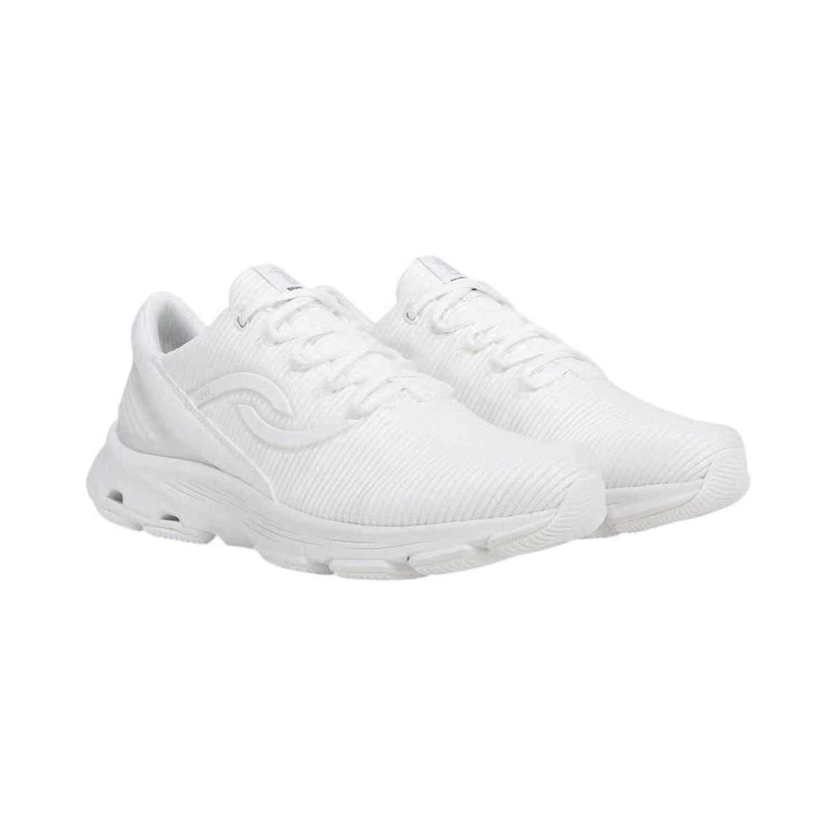 The next generation of our fan-favorite Devotion women’s walking shoes features more rubber in the outsole for standout durability and grip, plus exceptional cushion and stability. BEST FOR: High-performance fitness walking. APMA Approved: Awarded the American Podiatric Medical Association Seal of Acceptance for products that promote good foot health. .PERFORMANCE TESTED: Best for impact + stability during walking, proven in lab testing by Heeluxe. INNOVATIVE TECH: Full-length RE-ZORB® responsive cushioning for shock absorption + impact protection, plus extra RE-ZORB® in the forefoot and heel. MADE FOR WOMEN FIT: Women's sneaker designed for a woman's unique foot shape, muscle movement, and build with a narrower heel, roomier toe, and softer foot cushioning . MATERIALS: Breathable mesh with partially recycled linings + Padded heel + Printed design on upper + Molded heel stabilizer. CLOSURE: Secure lace-up front. INSOLE: Anatomical insole for arch support + heel support made with partially recycled EVA. MIDSOLE: ACTIVfoam™ EVA for soft cushioning + built-up cushion in the midfoot for stability. OUTSOLE: Durable rubber sole for grip + built-in compression channels for shock absorption. WEIGHT: 246 g/8.7 oz per shoe. HEEL-TO-TOE DROP: 10 mm.