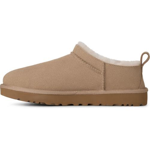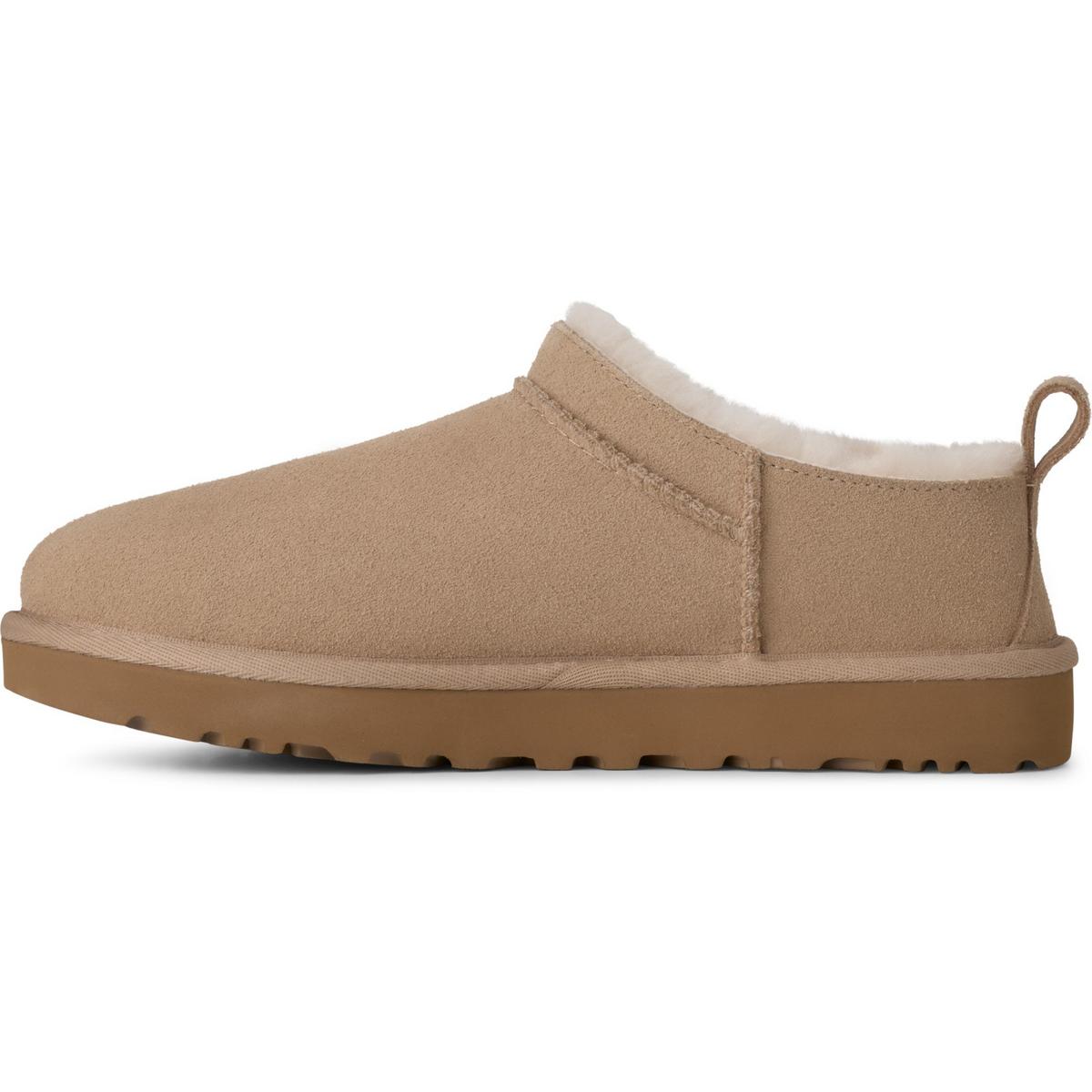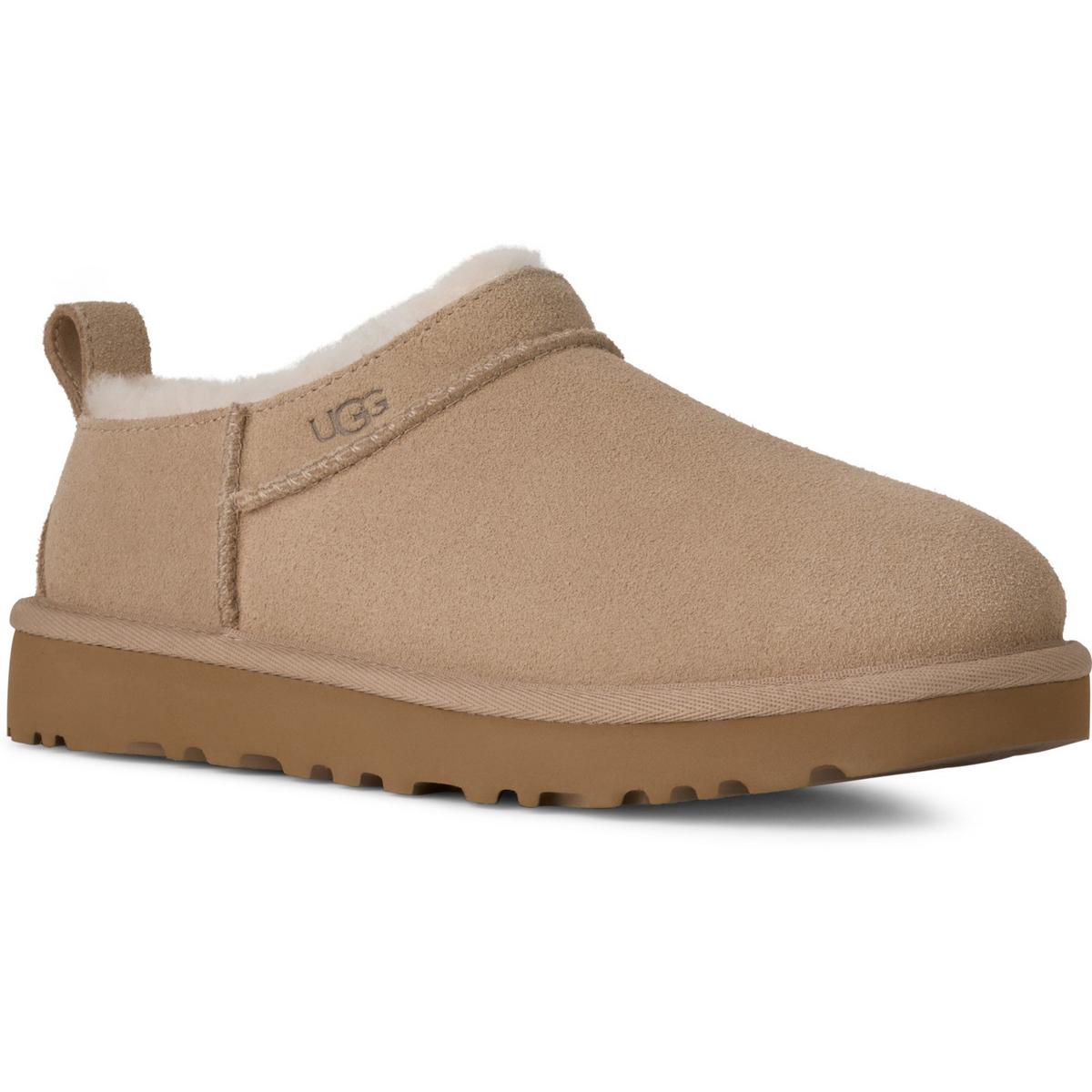 The Women's UGG Classic Micro Boots reimagines the fan-favorite Classic Boot with a new, low-profile silhouette, delivering the same high-profile comfort in a versatile, modern package. Crafted with a genuine suede upper, this boot features a soft sheepskin lining that naturally regulates temperature, ensuring your feet stay cozy whether you choose to wear socks or not. This luxurious lining also extends to the insole, surrounding your foot in 17mm of plush warmth. The boot is built on a lightweight Sugarcane EVA outsole which provides effortless support and adds that signature easy slipper feeling to every out-of-the-house venture. Perfect for adding a touch of classic comfort to your everyday style, the UGG Classic Micro is a luxurious staple you'll reach for again and again.