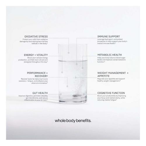 The hydrogen becomes suspended in the water, creating hydrogen-enriched water. A highly bioavailable solution designed to combat oxidative stress, support cellular health, and enhance overall wellness.