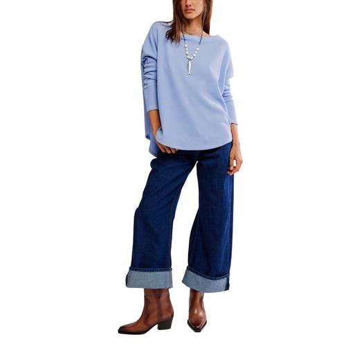 Women's Free People We The Free Latte Blues Solid Thermal Long Sleeve Boat Neck Shirt