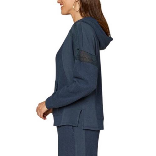 Women's Democracy Half Placket Mixed Media Long Sleeve Hooded Shirt