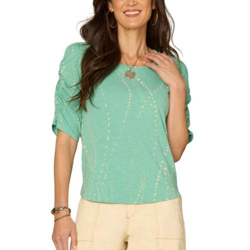 Women's Democracy Ruched Elbow Sleeve Dot Print Knit Scoop Neck Shirt