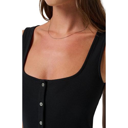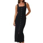 Sleek, sculpted, and undeniably soft. This ribbed midi dress features a flattering square neckline and a button-front that lets you choose your vibebuttoned up or left slightly undone. Elegant enough for dinner, comfortable enough for travelthe Cloud Rib Button Tank Dress is the definition of effortless.
