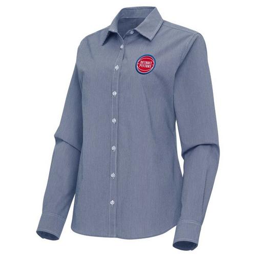Antigua Women's Detroit Pistons Porter Woven Long Sleeve Button Up
