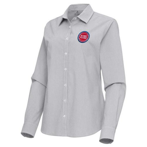 Antigua Women's Detroit Pistons Porter Woven Long Sleeve Button Up