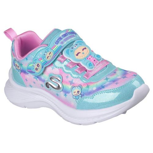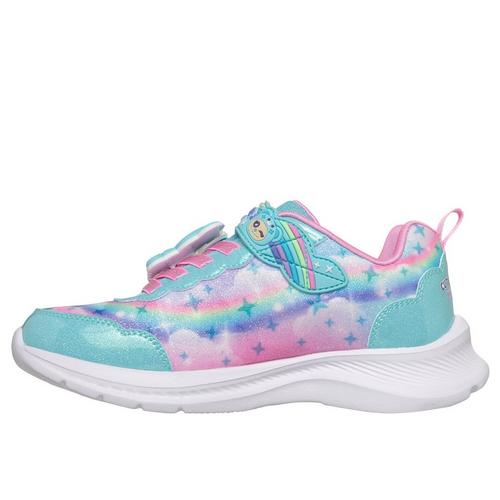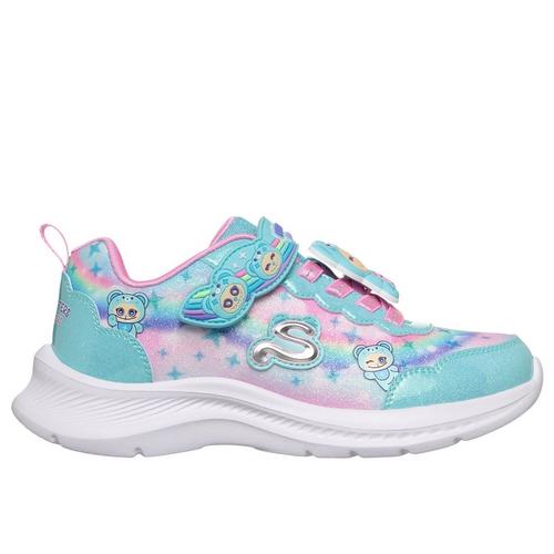 Keep your little one stylishly comfortable from heel to toe with Skechers Jumpsters - Cutie Critters™. This Skechers adaptive closure design features a glittery synthetic upper with Cutie Critters™-themed graphics, no-tie stretch laces with fixed Cutie Critters™ lace charm, and an adjustable instep strap for ease of wear.