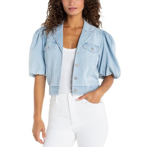 Women's Liverpool Los Angeles Puff Sleeve Cropped Trucker Cropped Denim Jacket