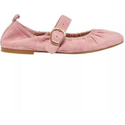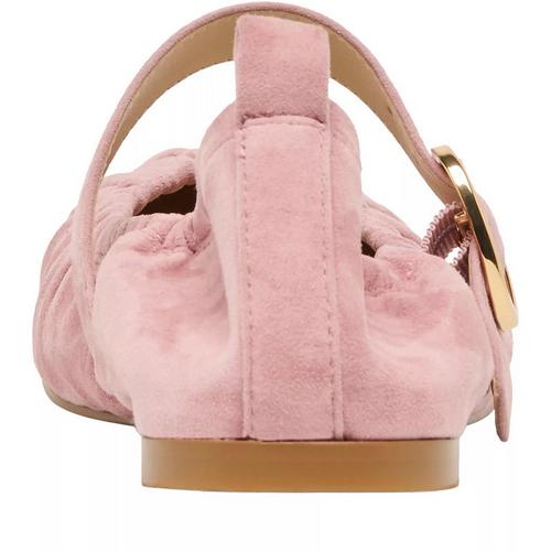 reimagines the classic ballet flat with soft ruching and a cinched silhouette for a flexible fit. Finished with a mary jane strap and gold buckle, this versatile, sustainably-crafted style.