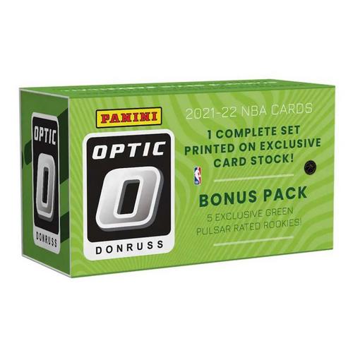 The highly popular Donruss Optic returns and delivers a 200-card base set, consisting of 150 Base and 50 Rated Rookies! Each SKU offers exclusive content for collectors to chase and collect! Each Box Set delivers a 200-card complete set featuring 150 Base Box Set and 50 Base Rated Rookies Box Set, along with a bonus 5-card pack featuring 5 Base Rated Rookies Green Pulsar!