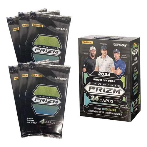 Panini presents the 2024 LIV Golf Prizm Trading Card Blaster Box. Each box contains 6 packs with 4 cards per pack. Look for Autographs from some of the Top Golfers in the World! Look for the Ultra-Rare Destination Insert! Look for the Blaster Exclusive Purple Pulsar Parallels!