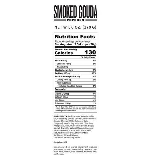 Smoked Gouda is buttery, creamy smooth popcorn with salty notes. And well, just plain ole’ nutty. Smoked Gouda cheese is smoked in brick ovens over flaming hickory chips. Did you know Smoked Gouda cheese is best served at room temperature? We are one step ahead with this salty snack straight off the shelf, room temperature and all, this will practically melt in your mouth.
