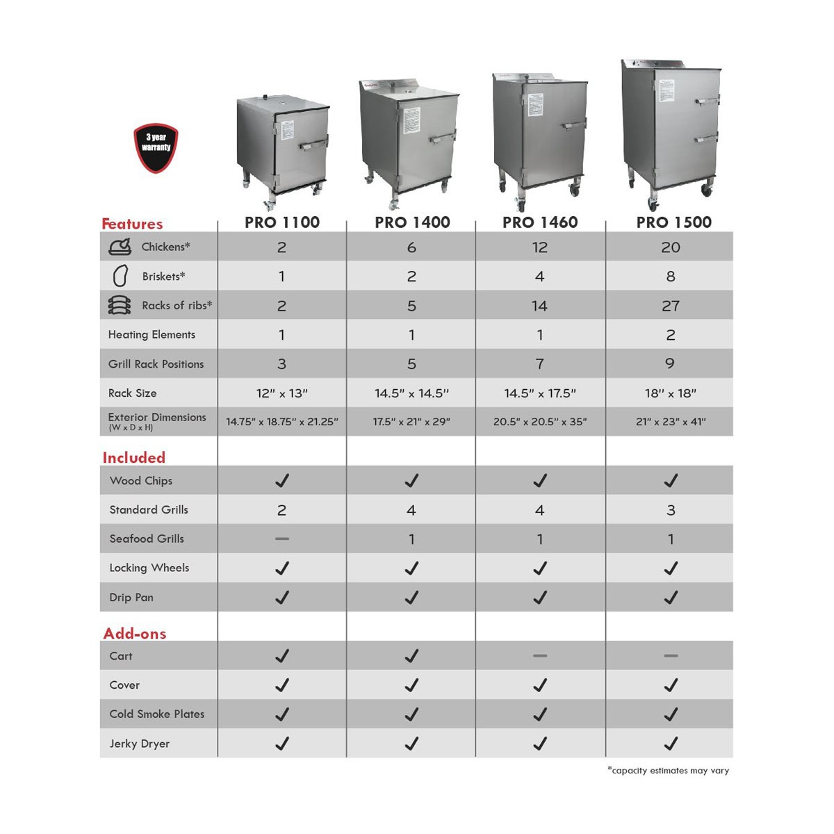 Our most popular electric smoker, the Pro 1400 is big enough to smoke a whole turkey, but still features a compact design perfect for portability and backyard cookouts! With the Pro 1400 model we also include a seafood grill rack, so you can find out why everyone loves our smoked salmon!