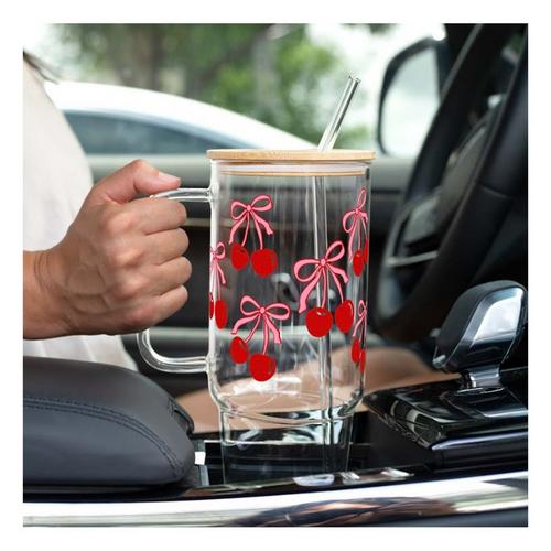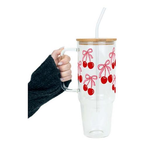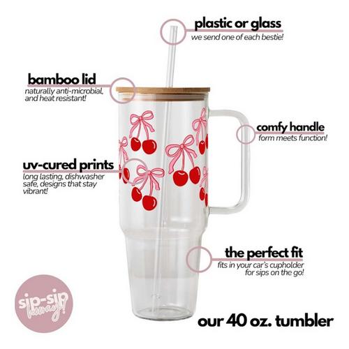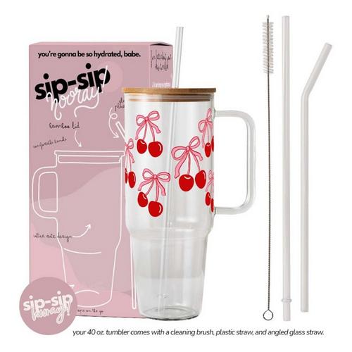 Sip-Sip Hooray 40oz Glass Cup with Lid and Straw
