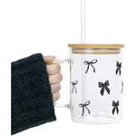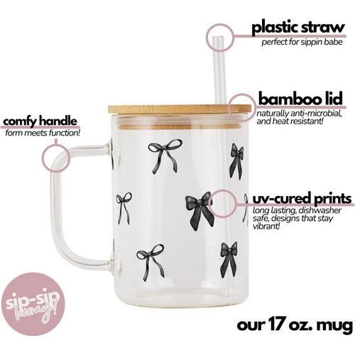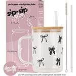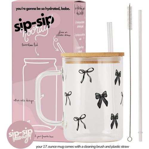 Sip-Sip Hooray 17oz Glass Cup with Lid and Straw