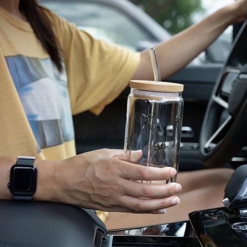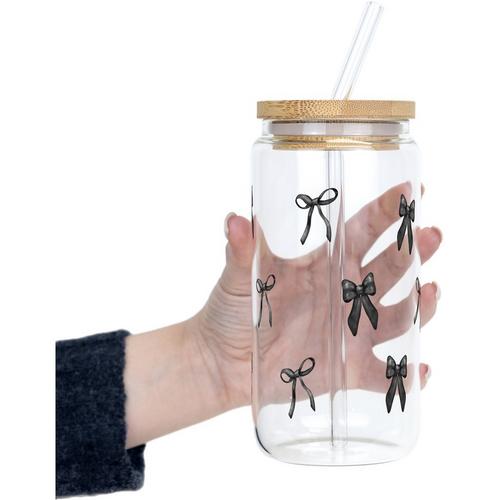 Sip-Sip Hooray 16oz Glass Cup with Lid and Straw