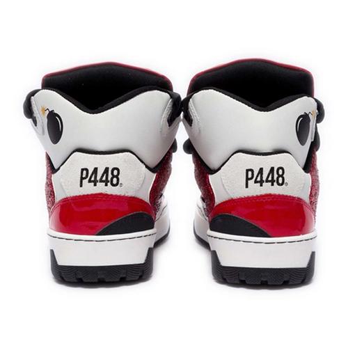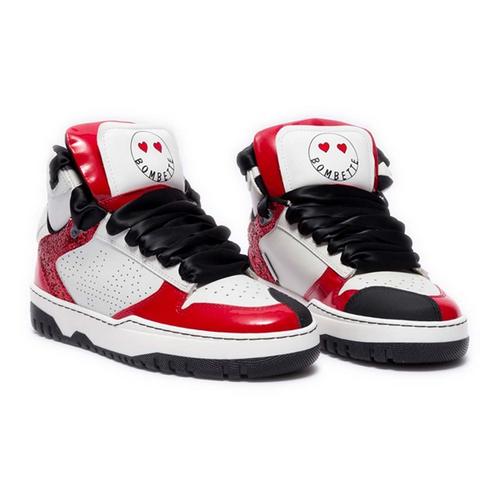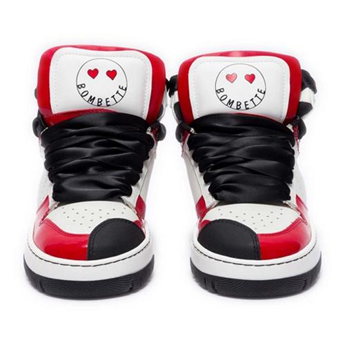 Inspired by the iconic ruby red slippers, the Marvin Plus Dorothy sneaker is Olympic skateboarder Bombette Martin’s take on the classic shoe. Designed with red glitter trim and red patent leather detailing on the tongue, back, and trim, these sneakers take us back to our childhood memories. The oversized black satin laces and her signature smiley face on the tongue add the perfect touch of flair.