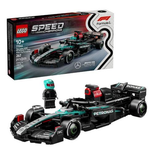 Boys and girls aged 10 plus can collect, build, display and race this awesome LEGO® Speed Champions Mercedes-AMG PETRONAS F1® Team Race Car (77244) toy vehicle. The sleek Mercedes-AMG F1 race car for kids and Mercedes-AMG PETRONAS F1 Team fans includes design details from the car that competed in the 2024 Formula 1® World Championship.
