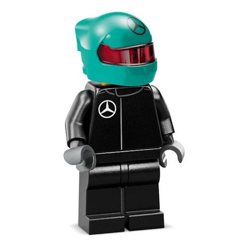 The F1 model car features a cockpit that opens by lifting the halo bar, a rear wing, wishbone suspension, sponsor stickers and wider rear tires imprinted with “Pirelli.” The buildable model also comes with a driver minifigure in a Mercedes-AMG PETRONAS F1 Team outfit and a winged helmet to place inside the cockpit and stage races.