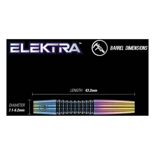 Next generation styling from the plushest looking darts range. Streamlined torpedo profile features a progressive scallop fitted with dynamic ring grip. Elektra is all about striking looks, feel and release. However you throw.