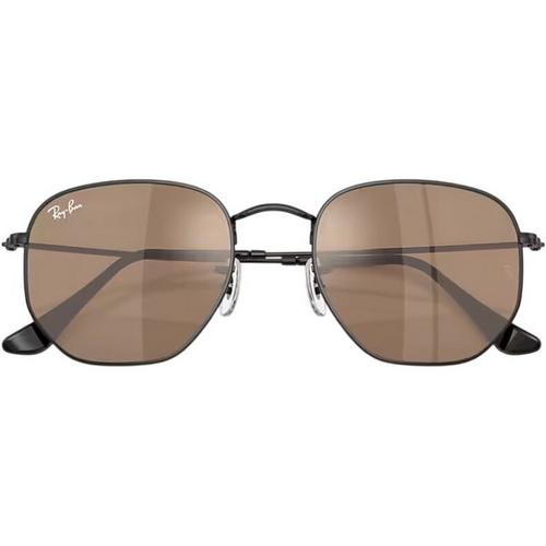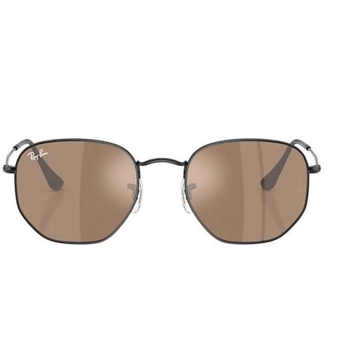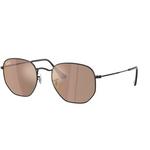 The Ray-Ban Hexagonal Flat Lenses sunglasses redefine geometrical design with lightweight metal frames in bold black. Featuring mirrored lenses, they deliver a striking metallic effect while reducing glare and protecting against intense light. Adjustable nosepads sunglasses ensure a customized fit, blending comfort with style. These contemporary Ray-Ban sunglasses embody Ray-Ban's iconic approach to eyewear design, making a statement with every wear.