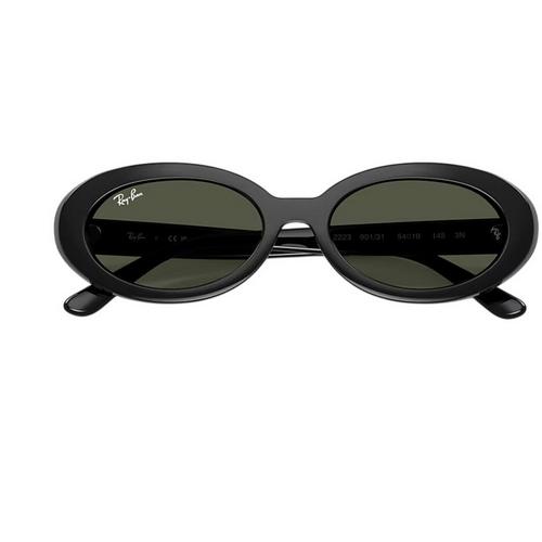 The RB2223 sunglasses redefine elegance with soft oval frames crafted from nylon and propionate for a lightweight yet bold silhouette. The black frame front pairs effortlessly with solid green lenses, combining a vintage-inspired look with contemporary comfort. Designed with rounded edges, these black oval sunglasses capture timeless sophistication with a distinctly feminine energy.