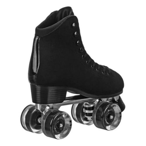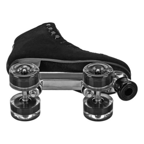 Roll in style with our fashionable DriftR quad roller skates. Lace them up and hit the rink, sidewalk, boardwalk, park, or trail. DriftR quads feature real suede leather uppers and lining, with deluxe comfort padding for optimal foot and ankle support. The aluminum chassis is light and responsive, while metal trucks and urethane cushions help provide control so you can dance, glide, and spin to your heart's content. Specially designed Kemistry Glide 65mm urethane wheels are large and grippy, giving you a smooth ride over a variety of surfaces. Skate fast with the included Bevo Silver-5 Speed Rated carbon bearings. These skates fit true to men's whole shoe sizes (Conversion: Size 8 Women's = Size 7 Men's). The Candi Grl line of skates by Roller Derby Elite mixes fun and fashion with a touch of nostalgia.