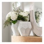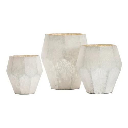 The Crestview Collection Glass Vase set includes three vases, small, medium and large. Made of glass, these vases have a transitional style that allows them to blend with any decor. These vases have an octagonal design that gives them a geometric look. Add these three vases with a brass finish to your home.