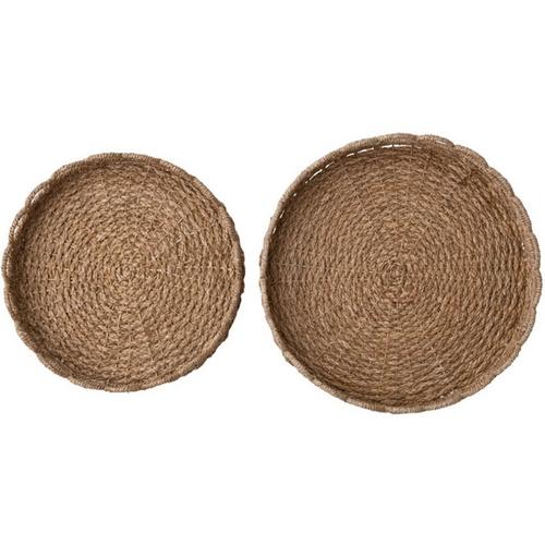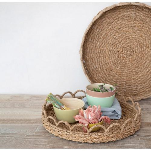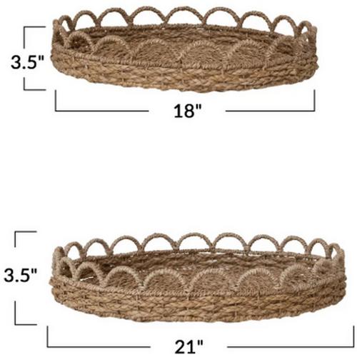 Creative Co-Op Decorative Woven Seagrass Scalloped Trays